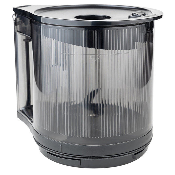 A work of art itself, our polished food-grade stainless steel pulp container is also practical. First, it has a much larger capacity than the small plastic pulp containers included with other juicers. This means you won't come back to the juicer when it is finished and find an overflowing pulp container, with pulp spilling onto your counter. Second, if you like to save your pulp for things like muffins, cakes, or dehydrated crackers, food-grade stainless steel is the best way to do it.