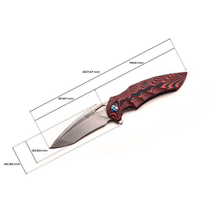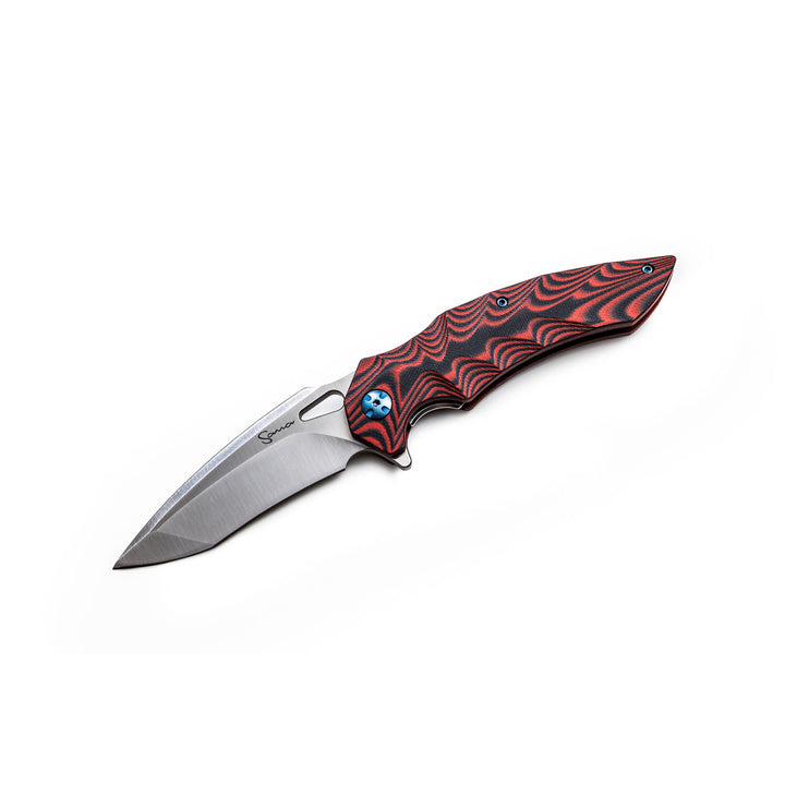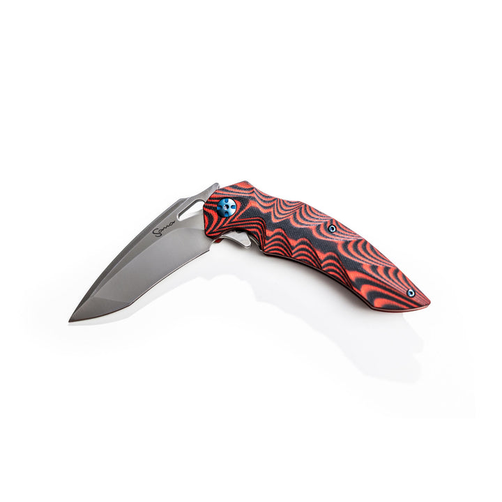 Crafted from G10 fiberglass composite, the handle is tough, weather-resistant, and designed for a secure grip in all conditions. The red and black layered design matches the rest of the Sana premium knife collection, making it as stylish as it is functional.